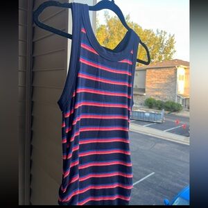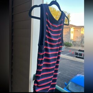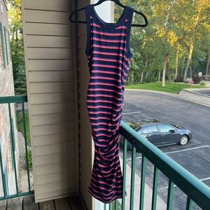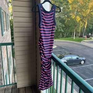 🆕 Michael Stars Navy Red Striped Tank Midi Dress Ruched Side Bodycon Size S