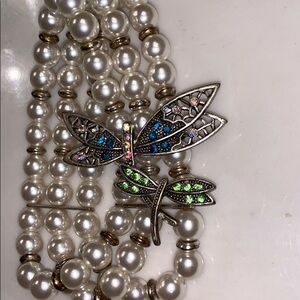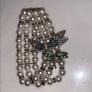 Vintage Dragonfly bracelet. The dragonfly comes off and you can pen on your sweater or jacket. Pictures don’t do it justice the gem stones on it are so Pretty!!!