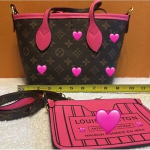 Stylish Louis Vuitton tote set in pink and brown. Features iconic monogram design. Perfect for adding luxury to your look.
