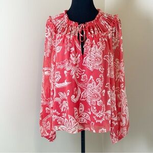 Ruffles at the collar and yoke elevate this chic chiffon blouse by EVEREVE featuring a gathered v-neckline, lined body, and long sleeves with elastic cuffs. Pair with denim or trousers for an effortlessly stylish look.