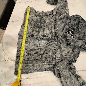 Luxurious faux fur jacket. Soft texture. Elegant design. Fits like a semi-cropped swing jacket. The sleeves go between your elbow and wrist. Three buttons down the front. Please see measurements.