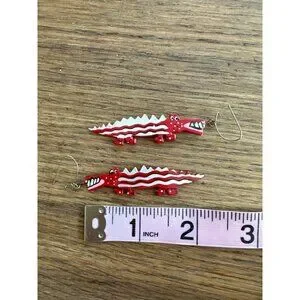 Alligator Earrings for Pierced Ears Red Lightweight Dangle Drop Crocodile