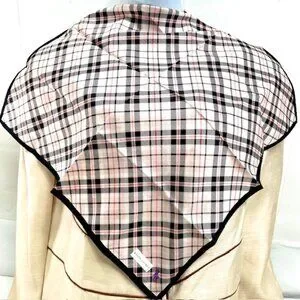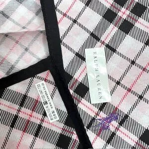 #61 New With sticker on - Ralph Lauren Mini Scar, /NeckHkerchief Cotton cotton made 20"x20" . Features color light- pink red , black, gray check with black trim, and logo details. Made in Japan.