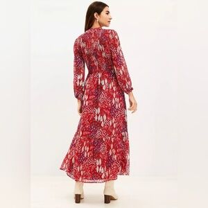 Chic long sleeve dress with vibrant red and purple floral pattern. Perfect for any occasion.
