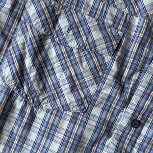Casual button-down with a classic plaid design. Features short sleeves and a comfortable fit. Ideal for everyday wear.
