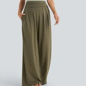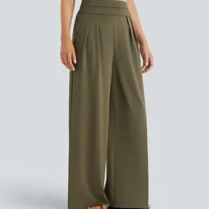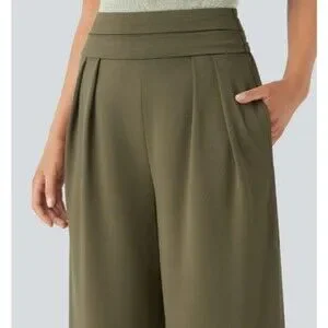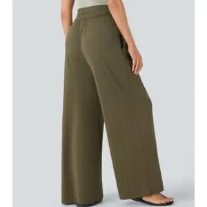 Halara Olive Super High Waist Flowy Wide Leg Pull On Pants.