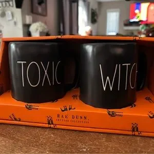NWT set of Halloween black Rae Dunn mugs, TOXIC & WITCH.