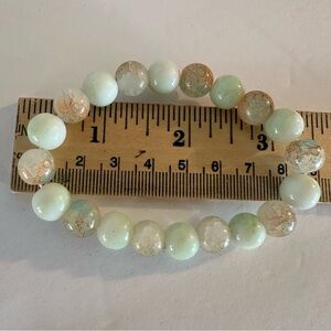 This elegant bracelet features a stunning combination of green, gold, pink, pastel beads, perfect for adding a touch of sophistication to any outfit. Ideal for any occasion.