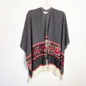 Umgee Boho Floral Fringe Kimono Poncho Swim Cover Up XXL. Pre-owned, clean, no damage or condition issues to note. Cute tie sides that when tied give you a dedicated arm hole. Nice oversized fit. Great casual poolside, vacation, summer vibes. Perfect for vacation, cruise wear, festival, bohemian style. Non smoking home.