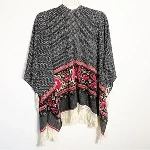 Umgee Boho Floral Fringe Kimono Poncho Swim Cover Up XXL