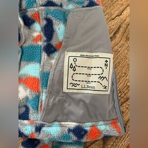 LL Bean boys size 8 fish hooded fleece jacket coat with hood long sleeve zip up