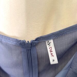 Chic blue dress with a stylish drape. Perfect for any occasion.