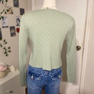 Chic light green cardigan with ribbed texture. Ideal for casual wear.
