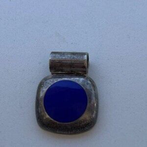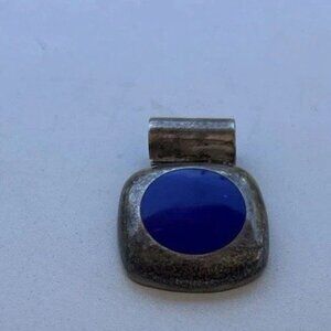 Sterling Silver 925 Blue Lapis Lazuli Square Pendant TC113 Signed Mexico