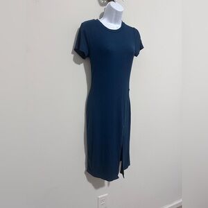 Anthropologie Bordeaux Teal Blue Ribbed Knit Dress