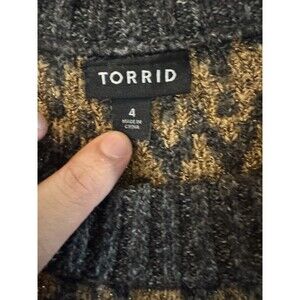 Torrid Vegan Cashmere Lurex Crew Neck Sweater Gray Gold Sz 4 4x Long Sleeve