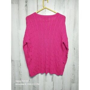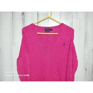 Vibrant pink V-neck sweater. Classic cable knit design. Iconic logo on chest. No stains, rips or defects. Reposhing this because I purchased for a trip and decided to wear something else.