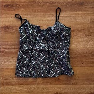 Elevate your wardrobe with this elegant floral black camisole. Perfect for layering or wearing alone, it offers both style and comfort.