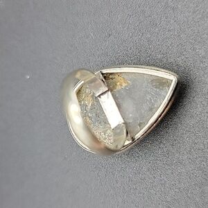 This elegant unisex ring features a stunning garden quartz stone with golden hues set in a sleek 925 silver plate band. Perfect for adding a touch of sophistication to any outfit. Size 7-3/4".