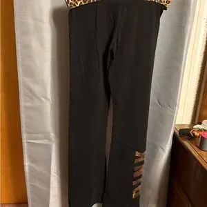 Victoria's Secret PINK Black Yoga Pants with Leopard Print Waistband