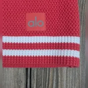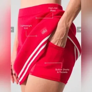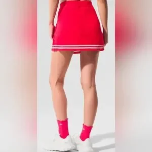 Alo Size Large Sweater Skirt In Candy Red With White Stripes Lined With Shorts