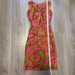 Vintage 1960s Lauhala Hawaiian Sheath Dress Pink Green Floral Wiggle Rayon