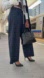 Navy Pinstriped Wide Leg Trouser with double waistband.