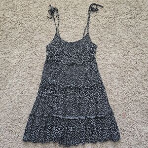 Women's Black and White Spaghetti Strap Tie Dress - Small