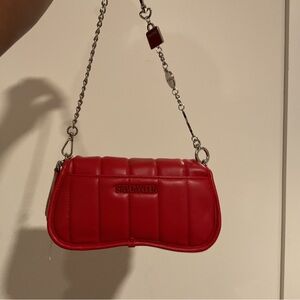 Bold red shoulder bag with a stylish chain strap. Perfect for adding flair to any outfit.