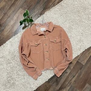 American Eagle Small Oversized Pink Corduroy Frayed Cropped Button Front Shacket