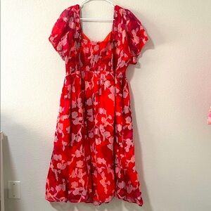 TORRID Women’s Midi Cotton Clip Dot Lace Up Smocked Dress