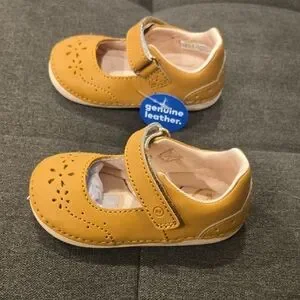 NWT & BOX. Charming tan leather baby shoes with secure velcro strap. Ideal for first steps.