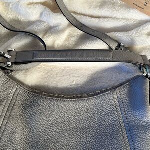 Beautiful gray pebbled, leather MK bag with both shoulder and cross body adjustable straps. EUC. No call outs