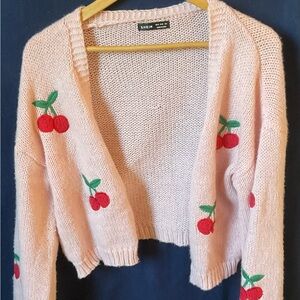 SHEIN Pink Cherry Embroidered Cardigan