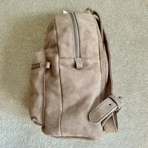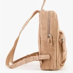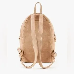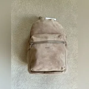 BAGGU Small Leather Backpack in Dune Tan Suede