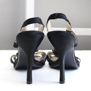 Nina Black Rosette Rose Stiletto Open-Toe Slingback Stilettos Heels Size 7.5