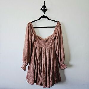 Free People How About You Mini Dress Size M Smocked Lace Up Bodice Puff Sleeve