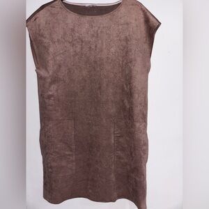 Stylish brown mini dress by Wilfred. Soft texture with a sleek design. Perfect for versatile styling.