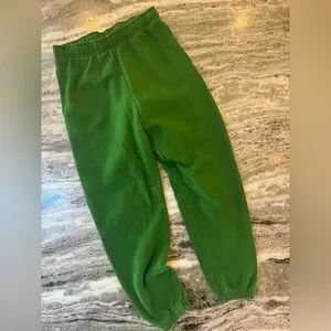 Comfortable green track pants. Elastic waistband and cuffs. Perfect for casual wear.
