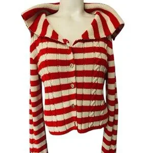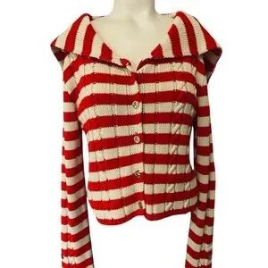 Zara Red & White Striped Knit Cardigan – Size M