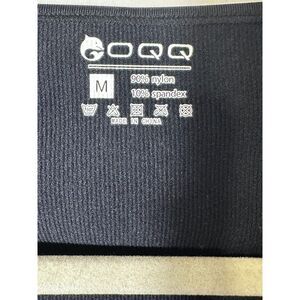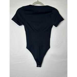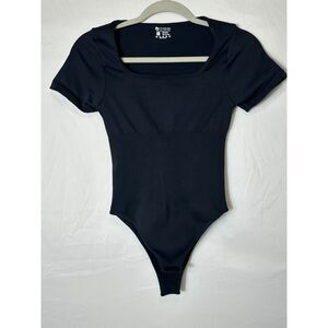OQQ Women's Ribbed Heart Neck Short Sleeve Bodysuit Black Size M. Excellent pre-owned condition, no signs of wear.