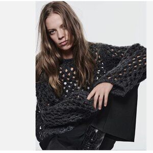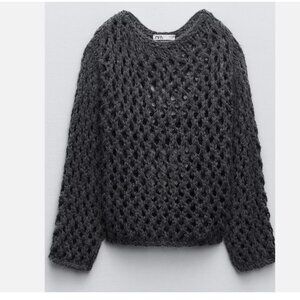 NWT ZARA GREY OPEN KNIT SWEATER WITH VENT