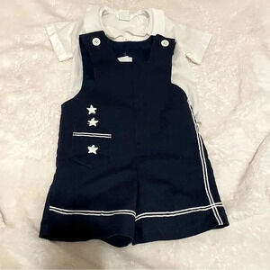 Vintage Good Lad 4T Stars navy overalls and white button up dress shirt set