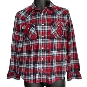 Levis Western Shirt Mens Size S Red Plaid Pearl Snap Button Long Sleeves Cotton