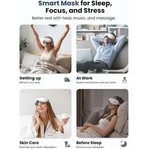 Double Layer Design: Features a double-layer massage pad to minimize pressure on the eyeballs, with an adjustable strap for a customizable, comfortable fit.
