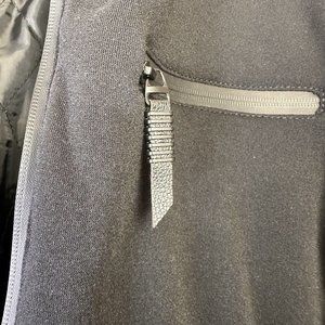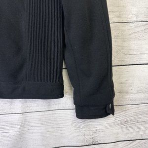 In great pre-owned condition. Nice fleece bomber jacket with a biker style. Features four front zip pockets