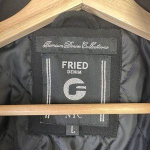 Fried Denim NYC Men’s Premium Black Fleece Biker Style Bomber Jacket Size Large