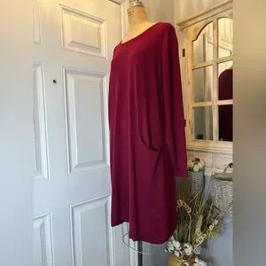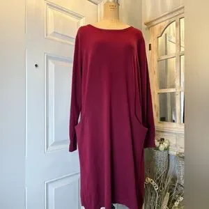 Sundance Rich Burgundy Long Sleeve Minimalist Cabincore LagenLook Dress Size XL