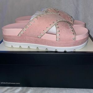 NWT J/SLIDES BAE Pink Faux Suede Sandal
