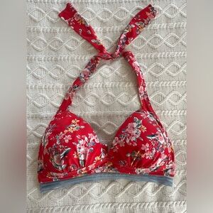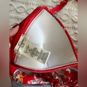 Jessica Simpson Floral Red Bikini Top Neck Tie Women’s Size Medium